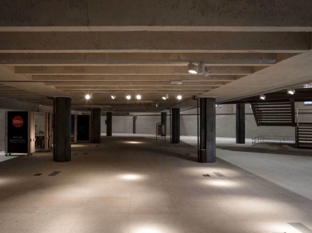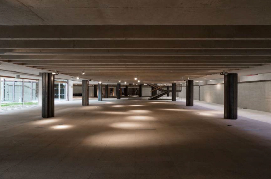 Espacio diáfano apto para acoger eventos de gran magnitud, junto con la zona mayor. Su conexión directa con la planta de acceso, el salón de actos y el jardín, y la posibilidad de ampliar el aforo con estos espacios, convierten esta sala en un área polivalente en el que tiene cabida cualquier tipo de actividad.