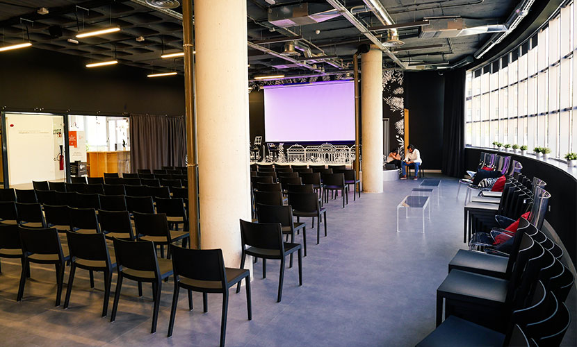 - Sala Hackathon, de 57 metros cuadrados anexa al Auditorio, con un aforo de 40 personas en formato teatro. El espacio perfecto para tus reuniones privadas dentro del propio evento.