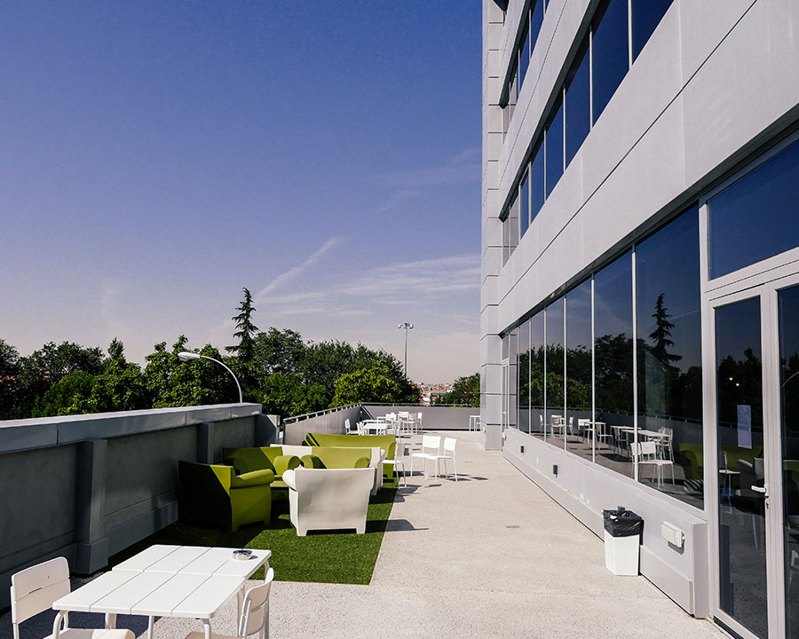 - Terraza, con una capacidad para albergar hasta 200 personas en formato cóctel. Durante diciembre y enero está incluida en los eventos que se realizan en Talent Garcen, si la temperatura en Madrid lo permite, tus invitados la disfrutarán durante el momento networking, descanso o catering.